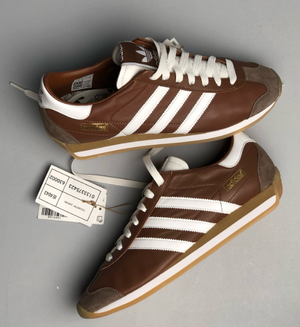 لو بتحب السنيكرز الكلاسيك اللي شكلها شيك وسهل يتلبس مع أي حاجة، يبقى كوتشي Adidas Country Leather باللون البني اختيار ممتاز.